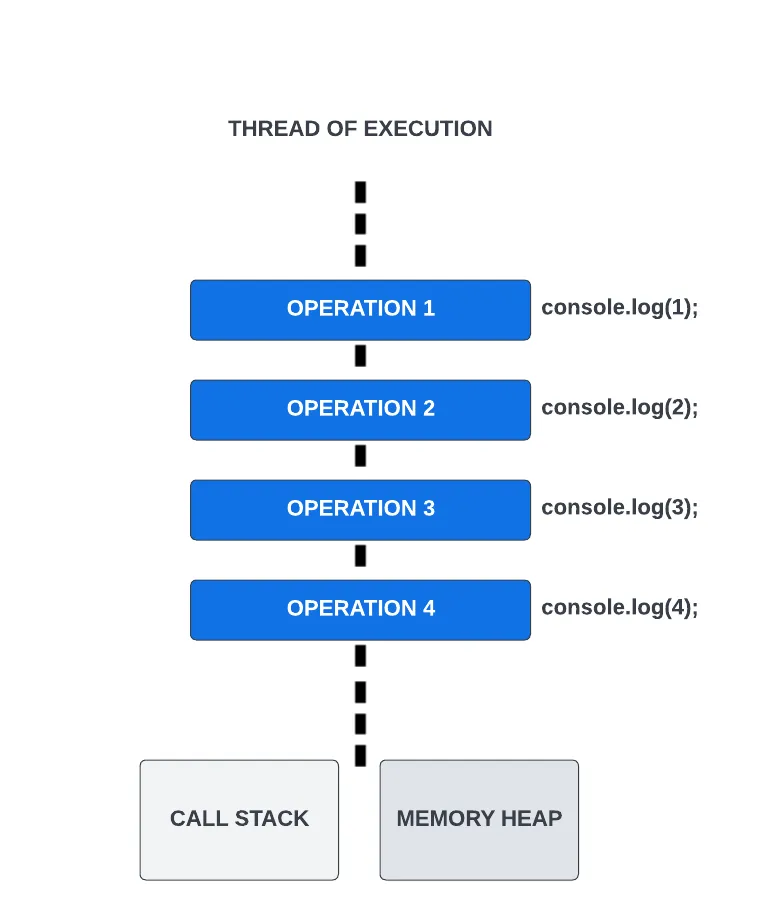 These operations run line by line and each one has to wait for the last one to complete before executing. Where we run into issues is where one of these operations takes a while. Something like fetching data from a server or if you’re using Node.js, maybe you’re reading from or writing to a file. That can take a while, and by a while, I mean usually a few seconds or even a few milliseconds, but that’s a long time in programming.